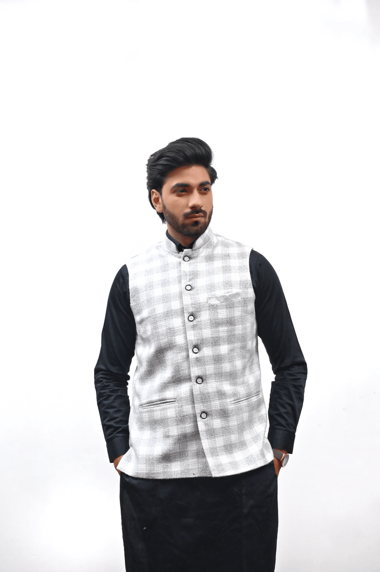 Introducing our latest Athens Gray & Milky White Checkered (Nehru) jacket, a timeless blend of classic style and modern sophistication. Crafted with meticulous attention to detail, this jacket features a premium checked fabric that adds a touch of elegance to any outfit